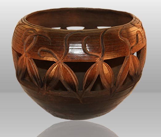 Each pot is built in the coil method, one layer at a time. It is then embellished or carved and set to dry for a month before it is fired.