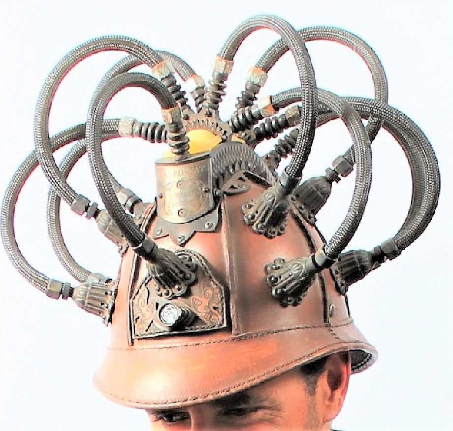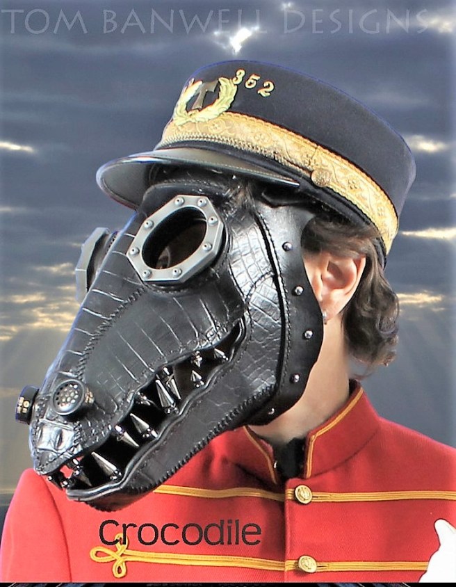 Thus the influence for Banwell’s steampunk-tinged hand-made masks and other works.More of Tom Banwell‘s extraordinary work can be found at http://tombanwell.com/ and https://www.etsy.com/shop/tombanwell/.