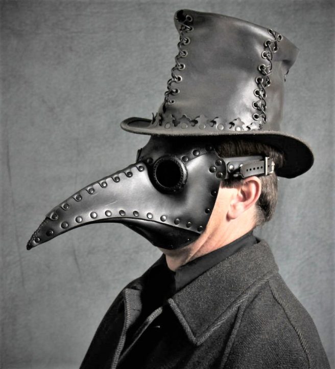 Banwell is a leather worker, steampunk artist, and mask maker who creates handcrafted leather plague doctor masks, costumes, and accessories.Largely self-taught, Banwell was innovative in the way he learned to imitate bronze, marble and wood using resin.In 2008, he hit his stride in the discovery of leather mask-making, his passion and business to this day. He incorporates resin with his leatherwork, which adds to the richness of his masks.A plague doctor (Italian: medico della peste) was a special medical physician who treated those who had the plague. They were specifically hired by towns that had many victims in times of plague epidemics.In the seventeenth and eighteenth centuries, some doctors wore beak-like masks which were filled with aromatic items to protect them from putrid air, which (according to the miasmatic theory of disease) was seen as the cause of infection.