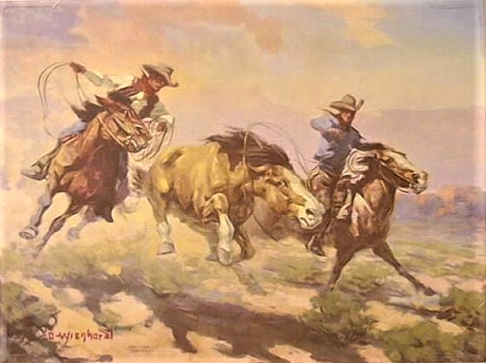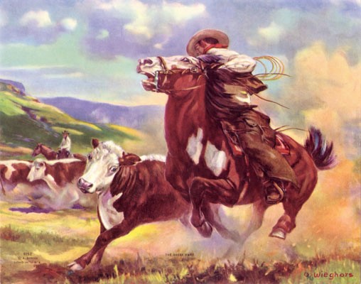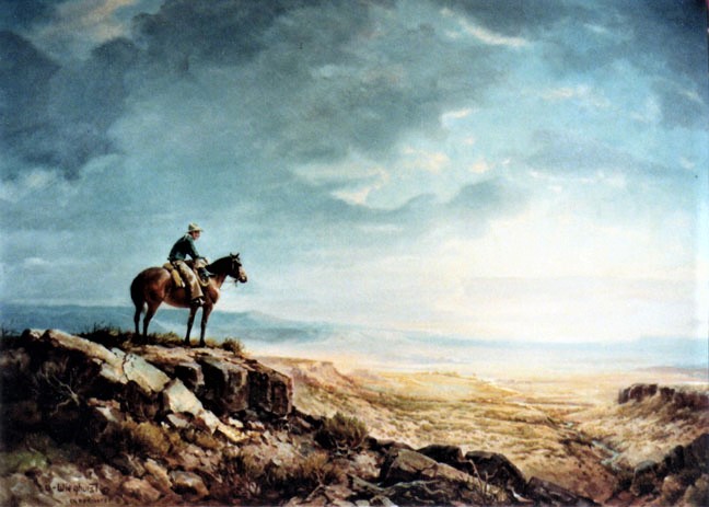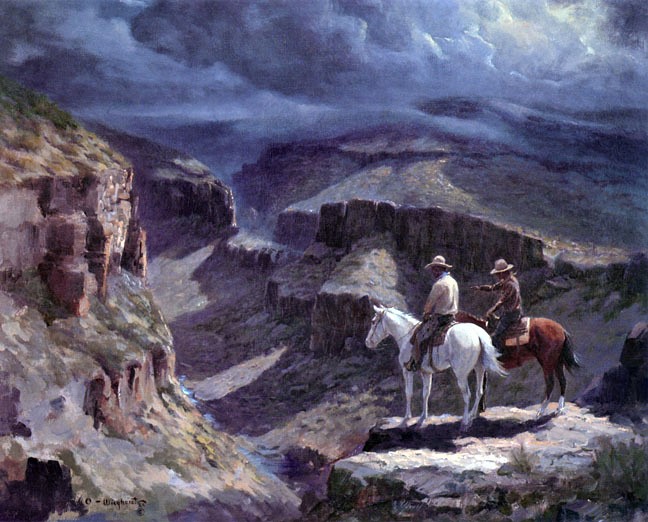 After three years of service with the Fifth Cavalry along the Mexican border, Wieghorst was mustered out of the military in 1922, and pursued the life of a cowboy, during which he wandered extensively throughout the Southwest, sketching whenever he could.