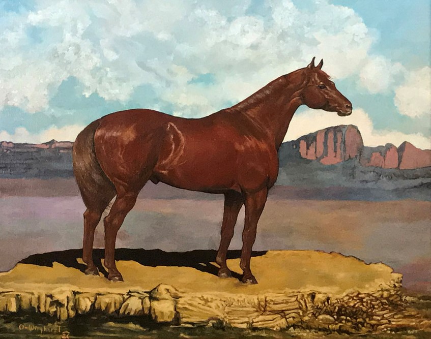 Olaf Carl Wieghorst (1899-1988) was born in Viborg, Denmark, and is known for his Western genre, Indian, cowboy, and horse paintings.